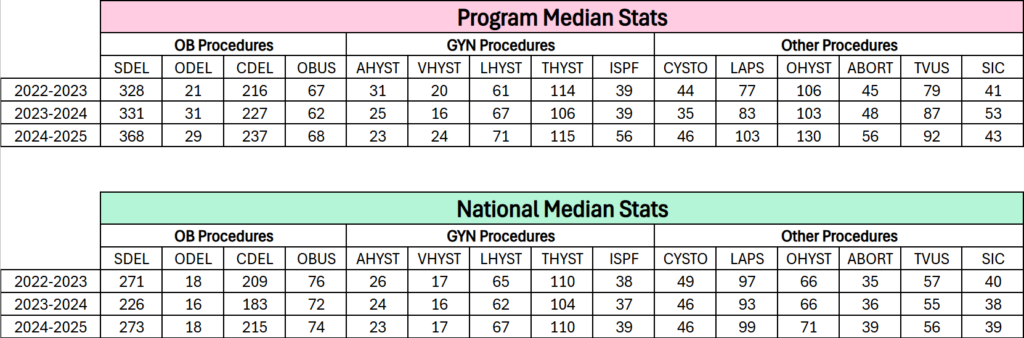 - PGY 1 procedural experiences compare favorably to national PGY 1 experiences